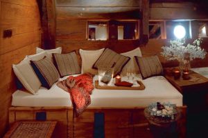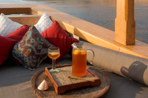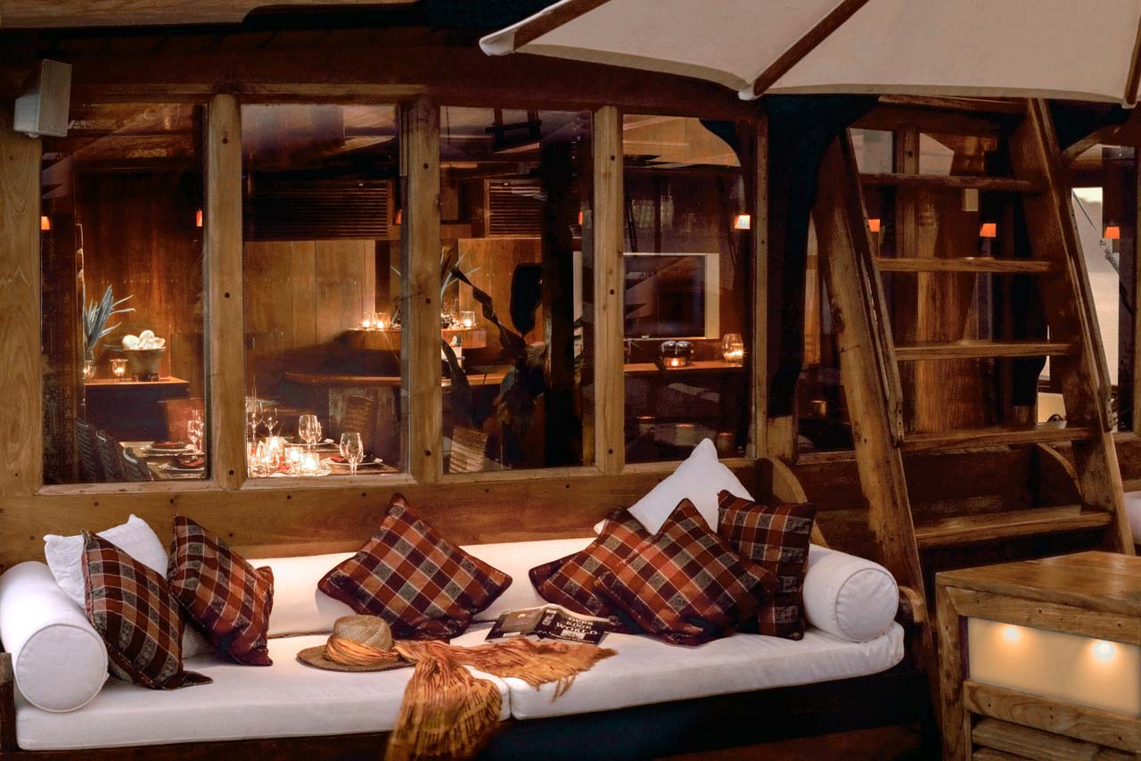 Panoramic windows bring the spectacular views into the air-conditioned teak dining area and lounge. Silolona’s main deck hosts alfresco dining with the ever-changing scenery of the passing landscapes and a sea breeze. Tables convert into daybeds for guests to relax on between meals.